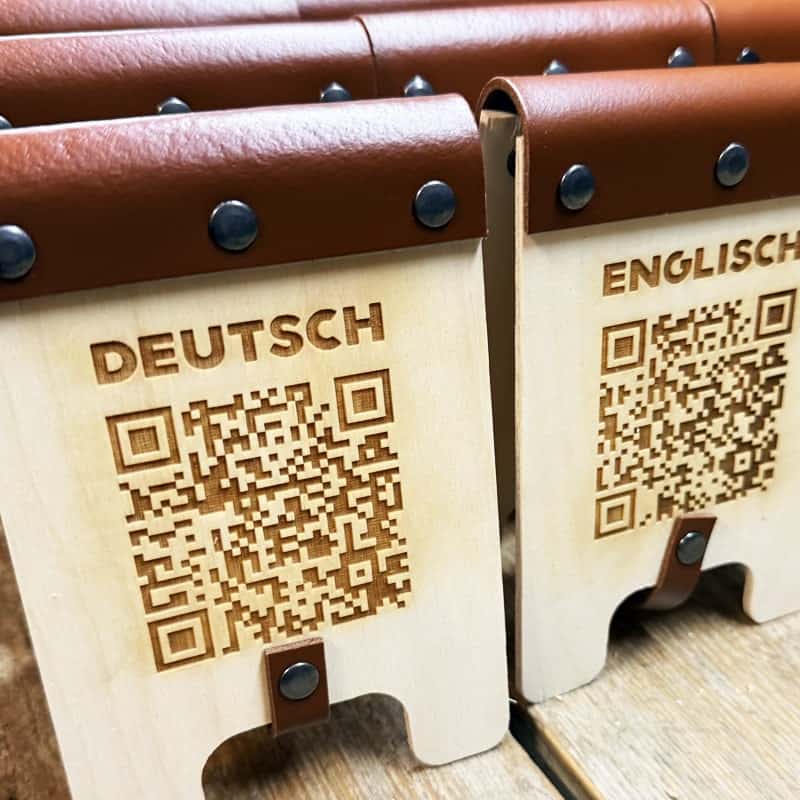 Unsere QR-Table-Displays sind aus hochwertigem Material gefertigt, so dass sie einer intensiven Nutzung standhalten können. Außerdem bieten wir die Möglichkeit, die Tischdisplays vollständig zu individualisieren.